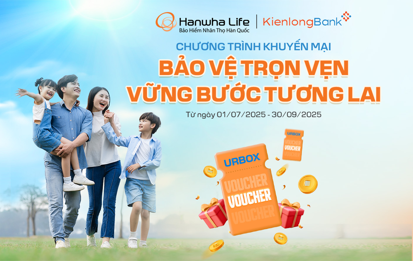 Nhằm tiếp tục mang đến cho khách hàng những kế hoạch bảo vệ và tài chính ưu việt, Hanwha Life Việt Nam triển khai Chương trình khuyến mại “BẢO VỆ TRỌN VẸN – VỮNG BƯỚC TƯƠNG LAI” dành cho khách hàng tham gia Hợp đồng bảo hiểm của Hanwha Life Việt Nam được phân phối thông qua Ngân hàng Thương mại Cổ phần Kiên Long (KienlongBank) với chi tiết như sau:
