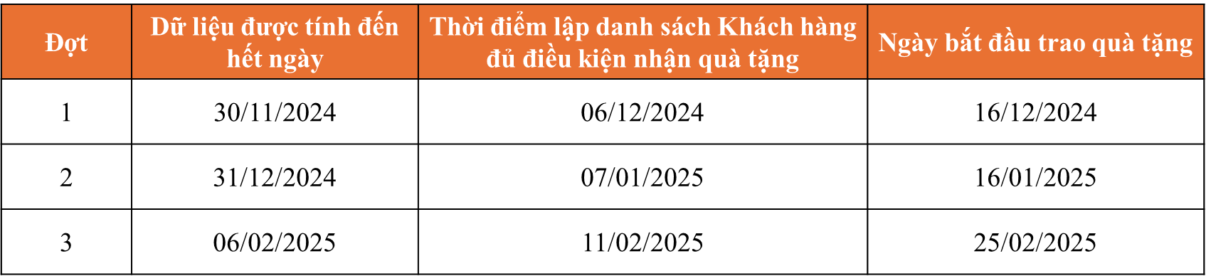 a) Hanwha Life Việt Nam sẽ lập danh sách Khách hàng đủ điều kiện nhận quà tặng của Chương trình khuyến mại theo quy định theo từng đợt vào các thời điểm sau: