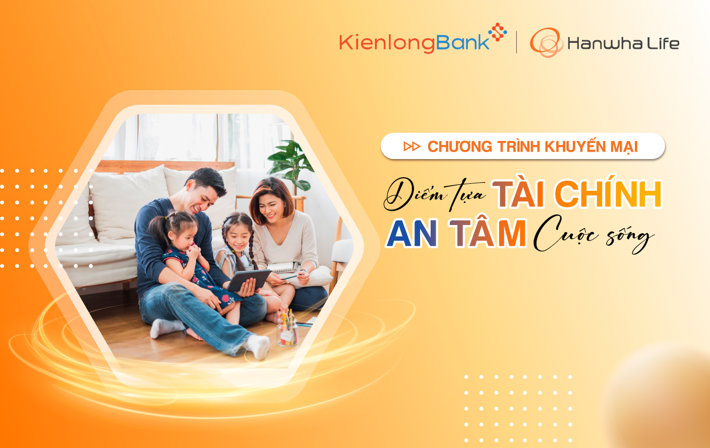 Hân hoan chúc mừng cho cột mốc hợp tác chiến lược giữa Hanwha Life Việt Nam và Ngân hàng TMCP Kiên Long (KienlongBank), đồng thời tiếp tục mang đến cho khách hàng những kế hoạch bảo vệ và tài chính ưu việt, Hanwha Life Việt Nam hân hoan triển khai chương trình khuyến mại “Điểm Tựa Tài Chính - An Tâm Cuộc Sống” dành cho khách hàng với chi tiết như sau: