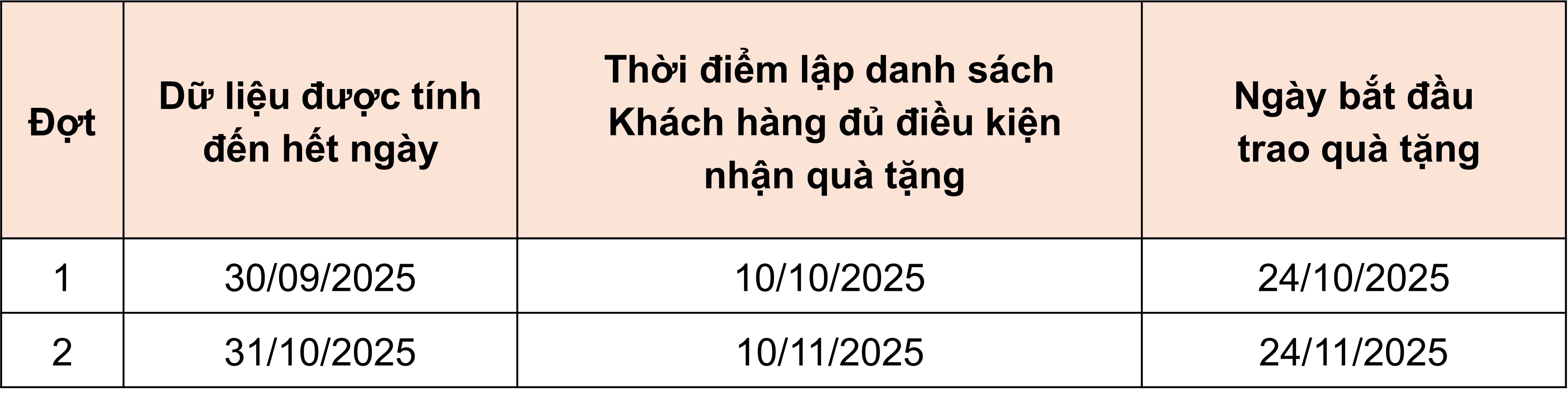 Khách hàng đáp ứng các điều kiện nêu tại Mục 2 của Thông báo này sẽ được nhận quà tặng tương ứng như sau: