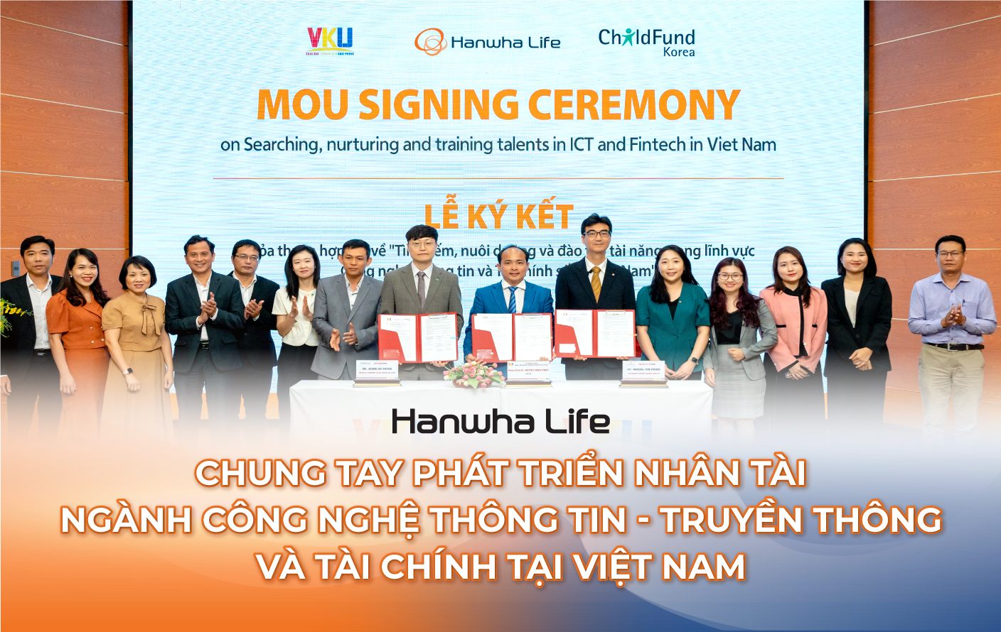 Ngày 29/02/2024, tại Đà Nẵng, Hanwha Life đã ký kết thỏa thuận hợp tác về "Tìm kiếm, nuôi dưỡng và đào tạo tài năng trong lĩnh vực Công nghệ thông tin và Tài chính số tại miền Trung và Tây Nguyên Việt Nam” với Trường Đại học Công nghệ Thông tin và Truyền thông Việt Hàn (thuộc Đại học Đà Nẵng) và Tổ chức Green Umbrella (Children's Foundation).