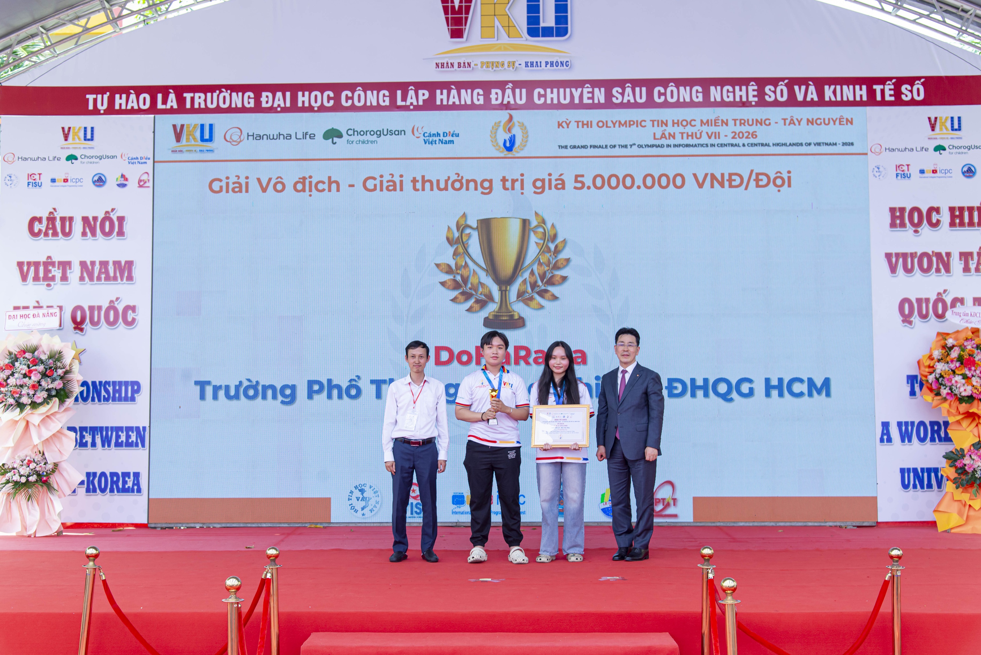 PGS.TS. Huỳnh Công Pháp - Hiệu trưởng trường VKU cũng khẳng định vai trò của Hanwha Life trong công cuộc tìm kiếm và phát triển tài năng tin học: “Kỳ thi Olympic Tin học miền Trung - Tây Nguyên có ý nghĩa rất quan trọng trong việc phát hiện, đào tạo nhân tài chất lượng cao ngành công nghệ thông tin cho đất nước và thế giới. Sự đồng hành liên tục ba năm qua của Hanwha Life không chỉ góp phần duy trì và nâng cao chất lượng cuộc thi mà còn kiến tạo nền tảng vững chắc để các em phát huy năng lực, tự tin hội nhập và vươn xa trong lĩnh vực này”.