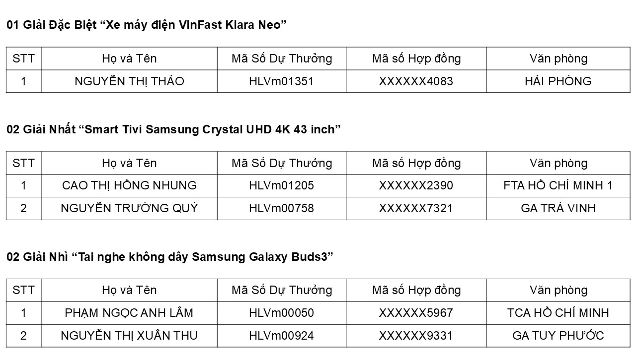 - Khách hàng trúng thưởng phải chịu thuế thu nhập cá nhân từ việc trúng thưởng theo quy định của pháp luật.