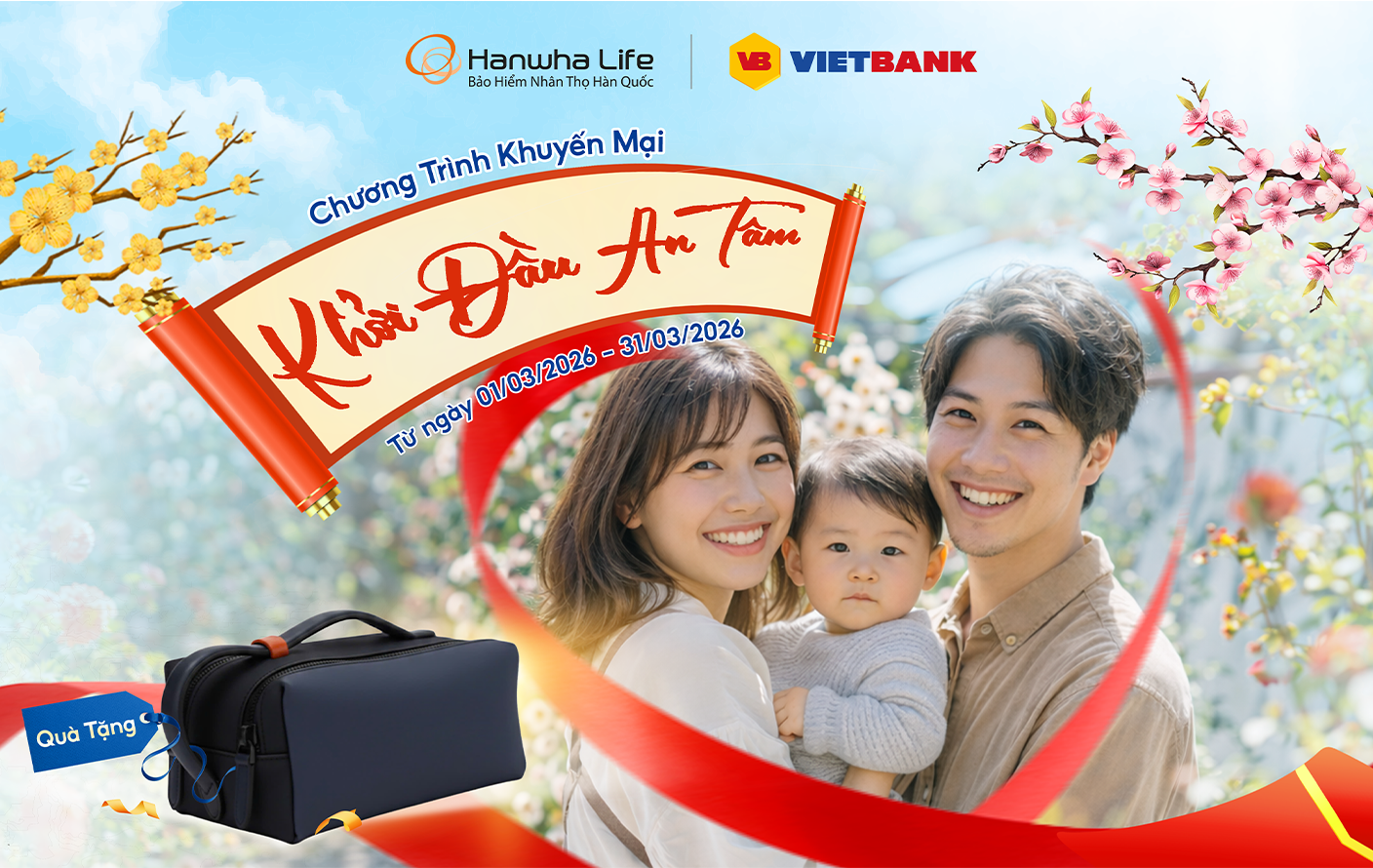 Hanwha Life Việt Nam (“Hanwha Life”) thông báo triển khai chương trình khuyến mại “KHỞI ĐẦU AN TÂM” dành cho các khách hàng tham gia sản phẩm bảo hiểm của Hanwha Life thông qua Ngân hàng Thương mại Cổ phần Việt Nam Thương Tín (“Vietbank”), với chi tiết như sau: