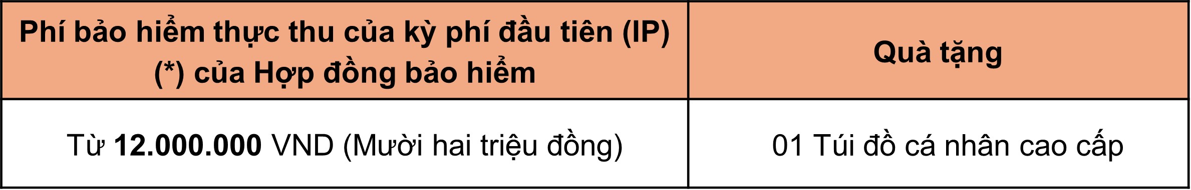 b) Phí bảo hiểm thực thu của kỳ phí đầu tiên (“IP”) của HĐBH của Khách hàng đạt từ 12.000.000 VND (Mười hai triệu đồng) trở lên.
