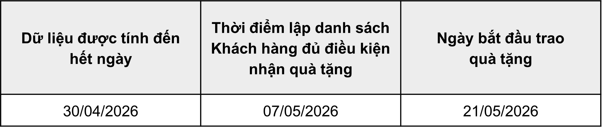 Khách hàng thỏa các điều kiện nêu tại Thể lệ chương trình khuyến mại sẽ được nhận quà tặng tương ứng như sau:
