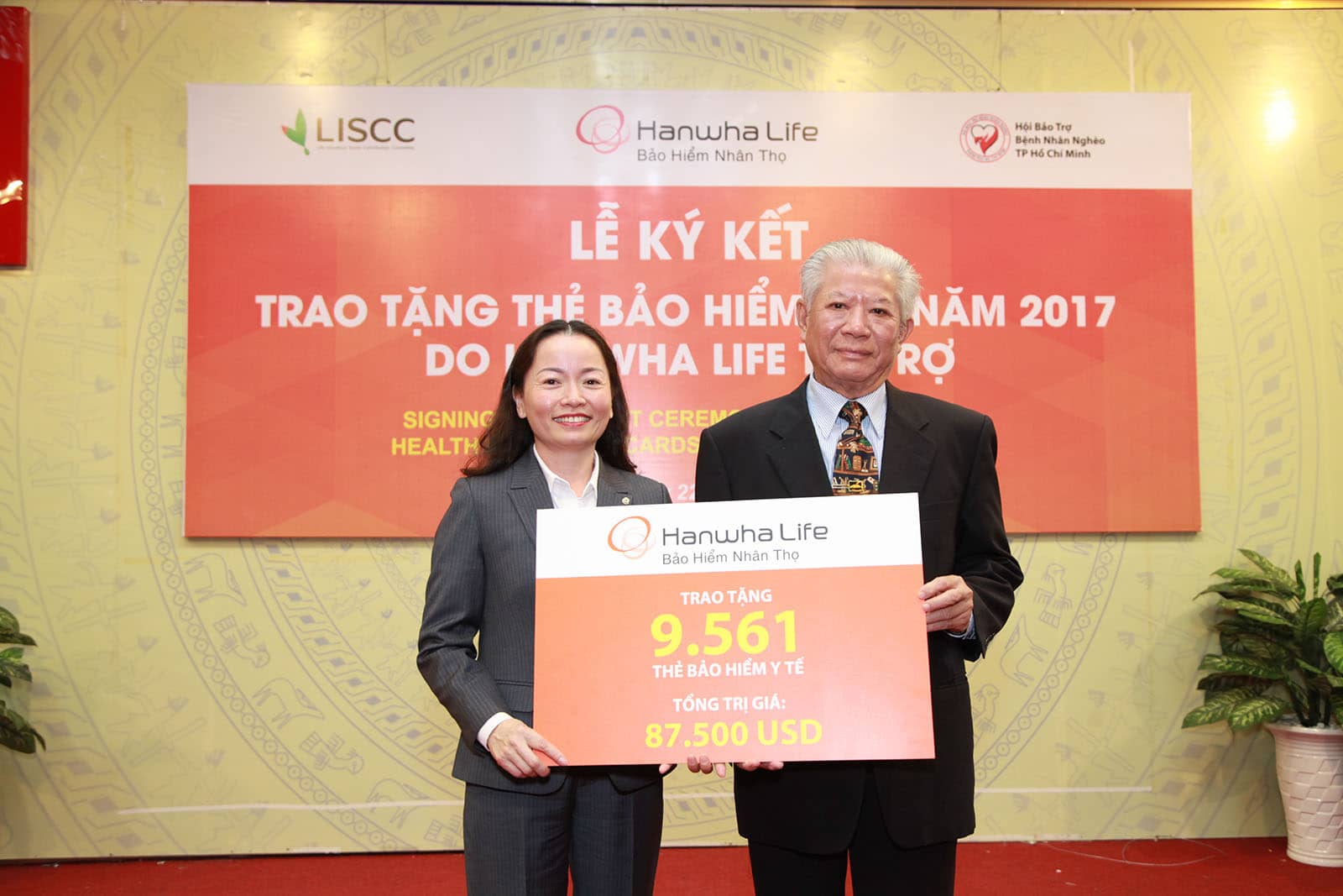 Đây là năm thứ 4 liên tiếp Hanwha Life Việt Nam hợp tác cùng Hội Bảo trợ Bệnh nhân nghèo Thành phố Hồ Chí Minh thực hiện. Dự án năm nay được chính thức khởi động từ ngày 22/03/2017 bằng buổi lễ ký kết chính thức giữa Hanwha Life Việt Nam và Hội Bảo trợ Bệnh nhân nghèo TP. Hồ Chí Minh. Theo đó, hơn 9.500 thẻ bảo hiểm y tế sẽ lần lượt được trao tặng cho bà con nghèo tại TP. Hồ Chí Minh, Thanh Hóa, Nghệ An, Hà Tĩnh, Đắc Nông, Kon Tum, Quảng Trị và Cà Mau, khởi đầu là tại TP.HCM với 310 thẻ bảo hiểm y tế trị giá hơn 186 triệu đồng được trao tặng cho các gia đình khó khăn ở Quận Tân Bình.