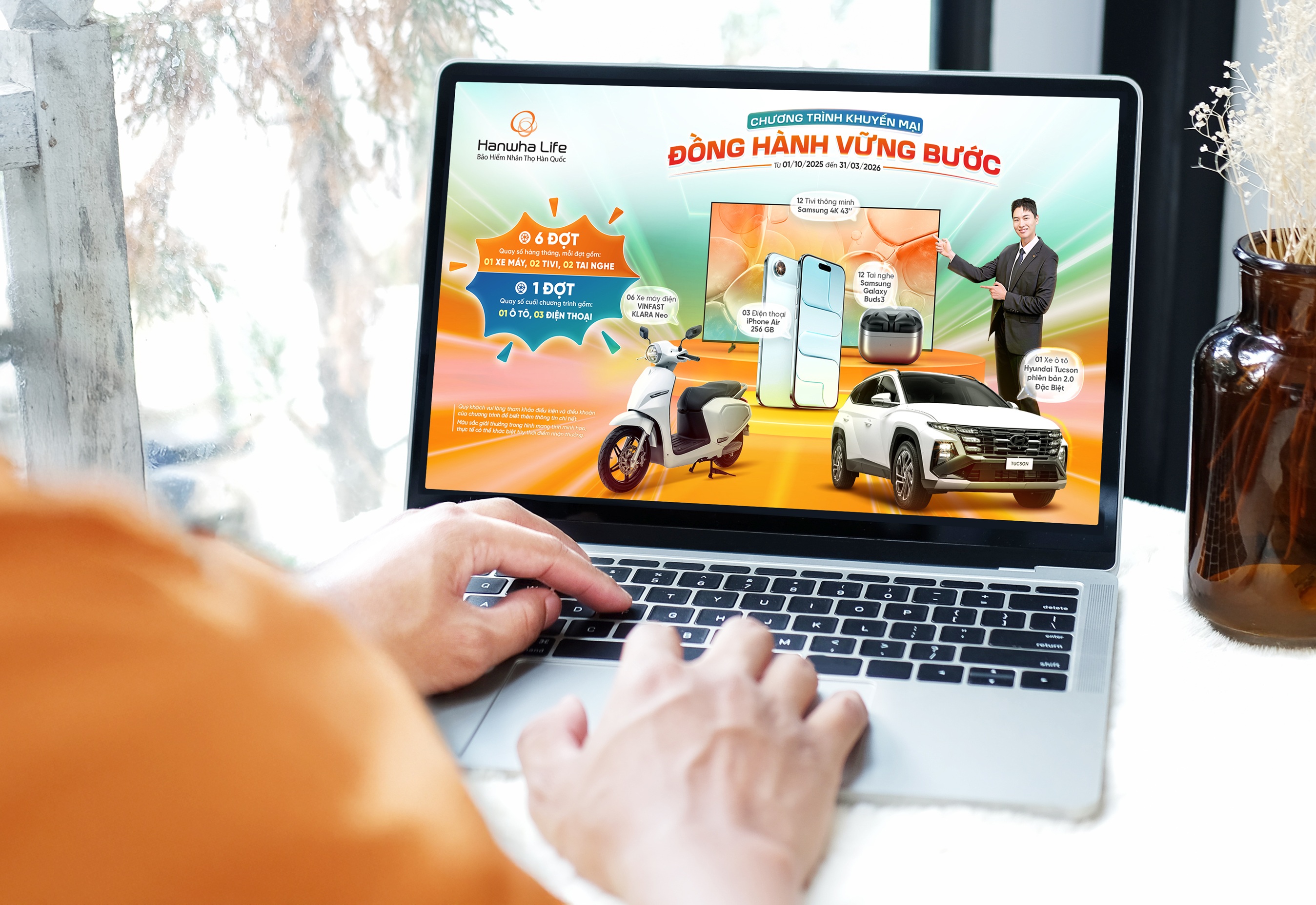 Từ ngày 01/10/2025 đến ngày 31/03/2026, Hanwha Life Việt Nam triển khai chương trình khuyến mại “Đồng Hành Vững Bước” trên toàn quốc, với tổng giá trị giải thưởng lên đến hơn 1,3 tỷ đồng, mang đến những phần quà thiết thực và hấp dẫn dành cho khách hàng tham gia hợp đồng bảo hiểm mới trong thời gian khuyến mại.