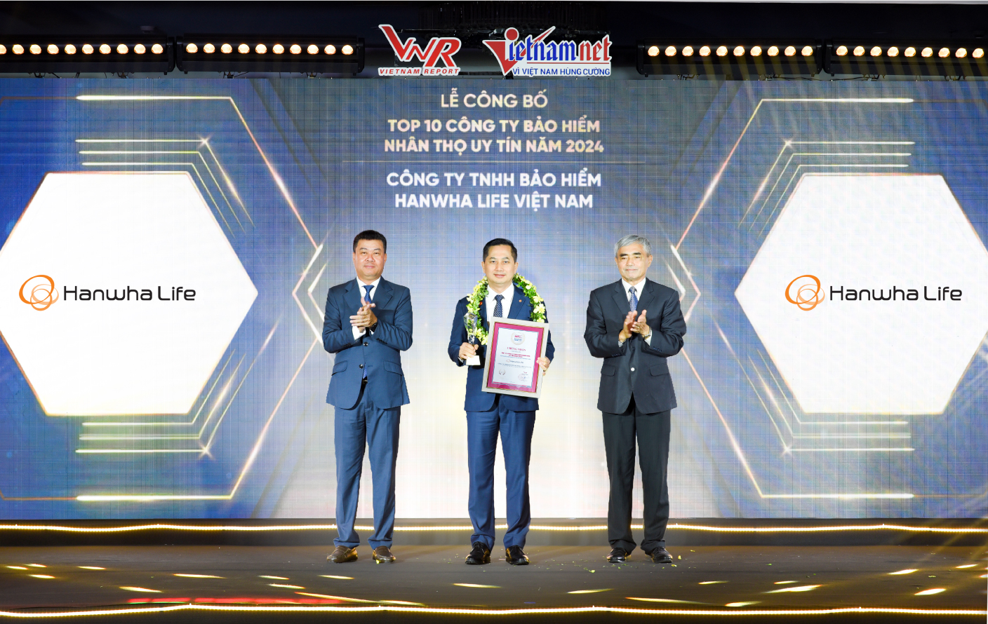 Ngày 2/8/2024, Hanwha Life Việt Nam tự hào được vinh danh trong lễ công bố bảng xếp hạng “Top 10 công ty bảo hiểm nhân thọ uy tín” do Vietnam Report tổ chức. Đây là năm thứ 8 liên tiếp Hanwha Life Việt Nam giữ vững danh hiệu này bởi những nỗ lực vượt trội trong việc đảm bảo quyền lợi khách hàng với tôn chỉ đặt sự tín nhiệm lên hàng đầu.