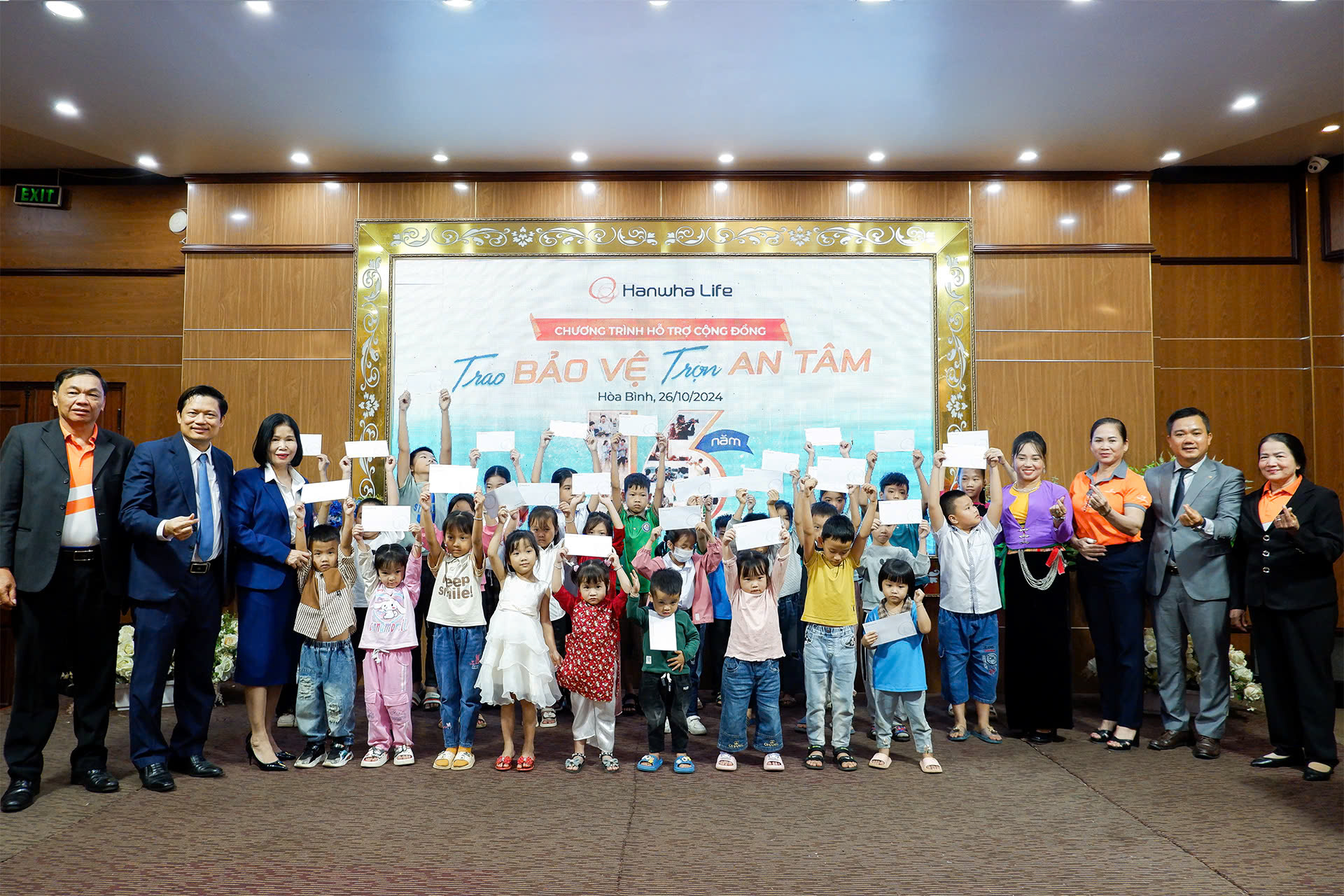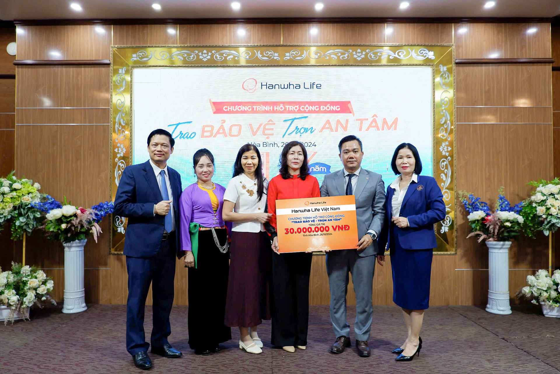 Ngày 26/10/2024, Hanwha Life Việt Nam phối hợp cùng Uỷ Ban Nhân Dân huyện Quỳnh Lâm và Hội Phụ nữ huyện Yên Phú tổ chức trao tặng 30 phần quà hỗ trợ tài chính cho các em học sinh nghèo hiếu học và hộ gia đình khó khăn của tỉnh Hòa Bình. Sự kiện nằm trong chuỗi hoạt động trách nhiệm xã hội (CSR) “Trao bảo vệ, trọn an tâm” được công ty bắt đầu triển khai từ tháng 6/2024 nhân dịp kỷ niệm 16 năm Hanwha Life hoạt động tại Việt Nam.