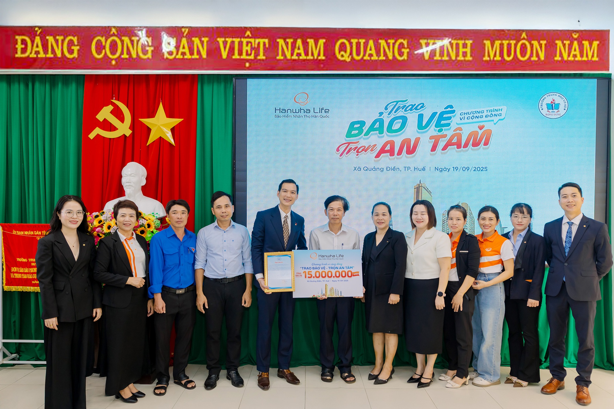 Ngày 19/9/2025, Hanwha Life Việt Nam đã trao tặng 60 suất quà khuyến học với tổng trị giá 30 triệu đồng cho các em học sinh có hoàn cảnh khó khăn của trường Tiểu học Xuân Phú và trường THCS Đặng Dung, thành phố Huế. Sự kiện nằm trong chuỗi hoạt động trách nhiệm xã hội (CSR) “Trao bảo vệ, trọn an tâm” năm 2025 của công ty nhằm khích lệ và tiếp bước đến trường cho các em học sinh.