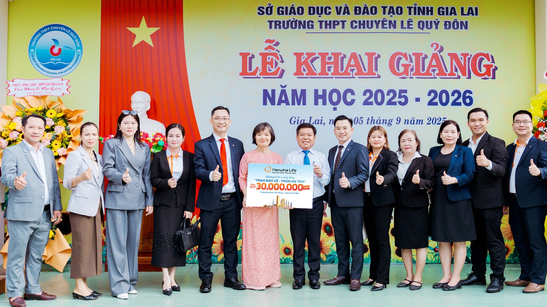 Ngày 5/9/2025, trong không khí hân hoan của ngày khai giảng năm học mới, Hanwha Life Việt Nam phối hợp cùng trường THPT Chuyên Lê Quý Đôn, phường Quy Nhơn, tỉnh Gia Lai trao tặng 30 phần học bổng cho học sinh có hoàn cảnh khó khăn của trường. Sự kiện nằm trong chuỗi hoạt động trách nhiệm xã hội (CSR) “Trao bảo vệ, trọn an tâm” năm 2025 của công ty.