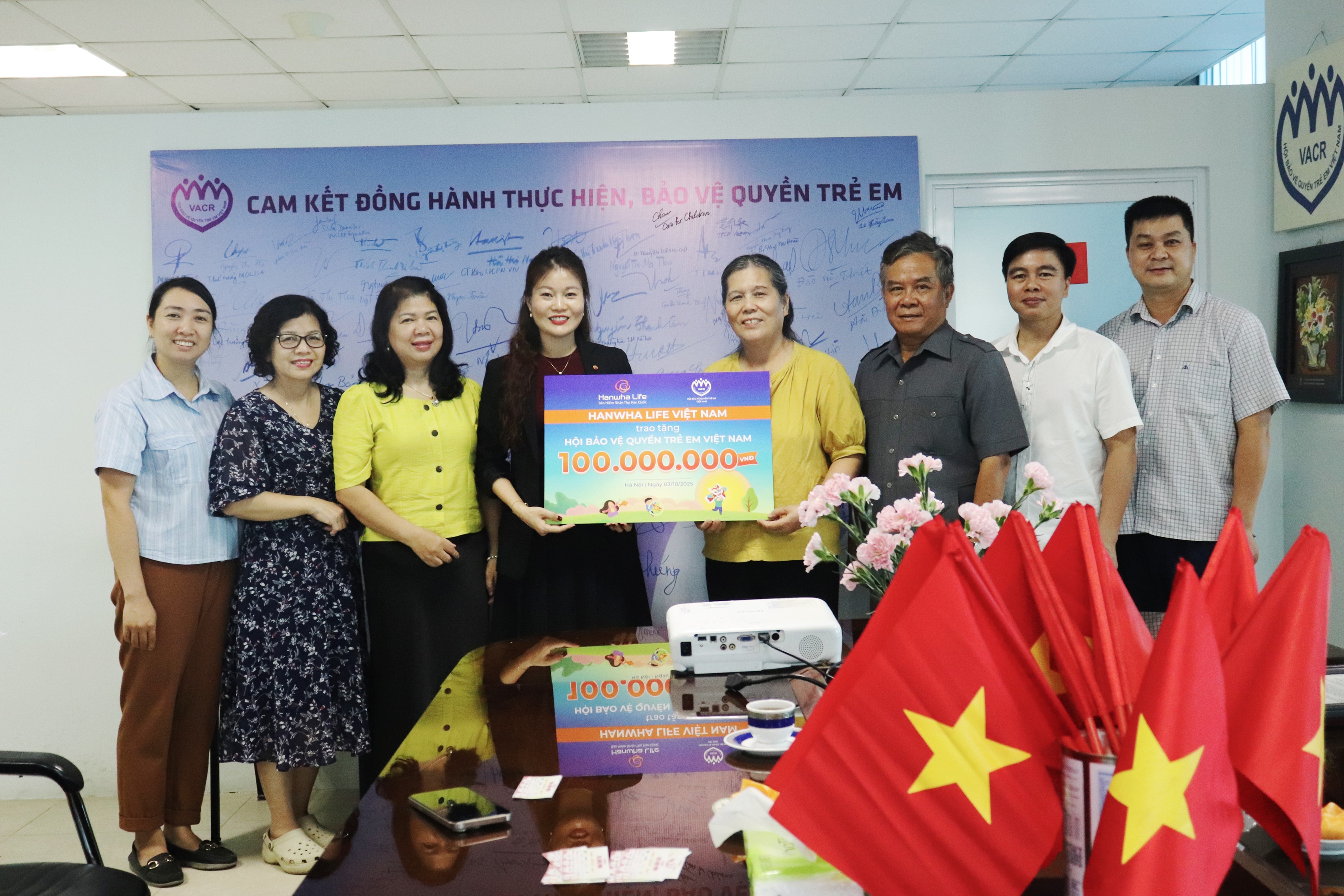 Ngày 3/10, Hanwha Life Việt Nam tiếp tục trao 100 triệu đồng đến Hội Bảo vệ Quyền trẻ em Việt Nam, nhằm mang đến một mùa “phá cỗ” yêu thương cho các em nhỏ khó khăn tại các tỉnh Nghệ An, Thái Nguyên. Đặc biệt, sự sẻ chia còn đến với cả các bệnh nhi đang điều trị tại Bệnh viện Nhi Trung ương Hà Nội, không chỉ giúp các em cảm nhận được niềm vui và không khí đoàn viên mà còn tiếp thêm nghị lực để các em vượt qua bệnh tật.