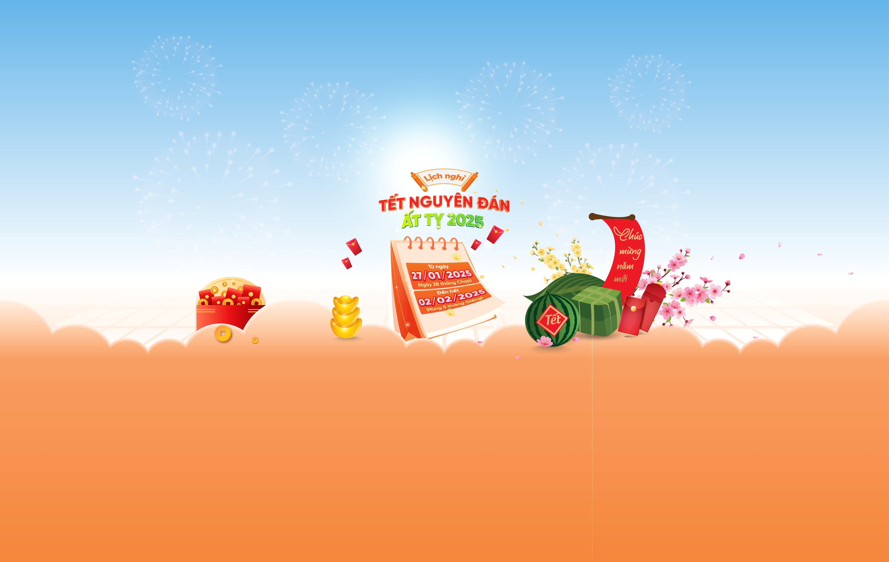 - Thời gian nghỉ: từ ngày 27/1/2025 đến hết ngày 02/02/2025 Dương lịch (tức từ ngày 28 tháng Chạp đến hết Mùng 5 tháng Giêng Âm lịch)